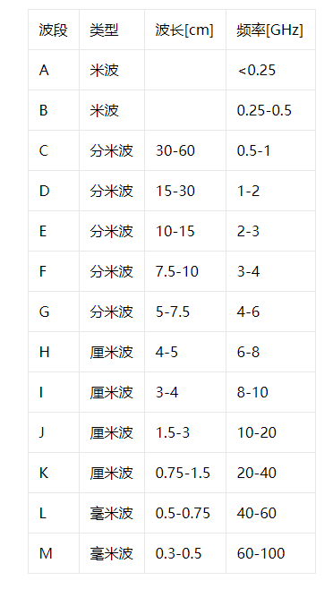 二战后雷达的波段有三种规范,德国规范、美国规范和欧洲规范。因为德国和美国的规范提出的较早,后大多数运用的是欧洲新规范: